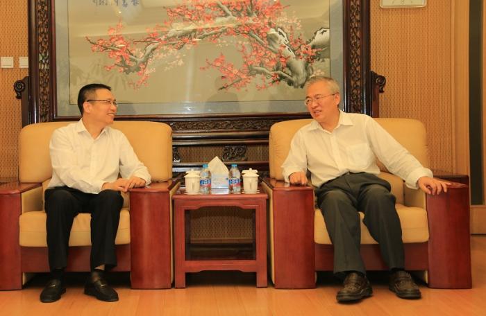 9月9日下午,签约仪式前,北京外国语大学党委书记韩震会见了徐飞一行。